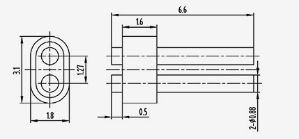 | 2-JD156830-0.5(5.8-2)-9 | أl=5.8 أ2=5.1 | ب1=2 ب2=1.3 | 1.5 | 6.8 | ن | 1.27 | 0.5 | 1.5 | 6 | 2 | لحام تسطيح الجانب العلوي للموصل الداخلي |