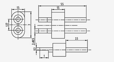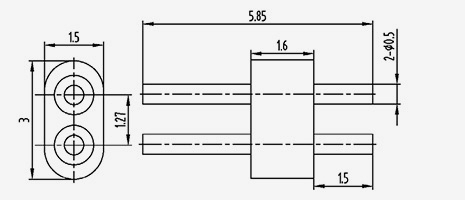 | 2-JD207015-0.6(7-3)-10 | أ1=7 أ2=6 | ب1=3 ب2=2 | 2 | 7 | 1.5 | 1.27 | 0.6 | 1.5 | 10 | 2 | الموصل الداخلي مسطح ومثبت على كلا الجانبين |