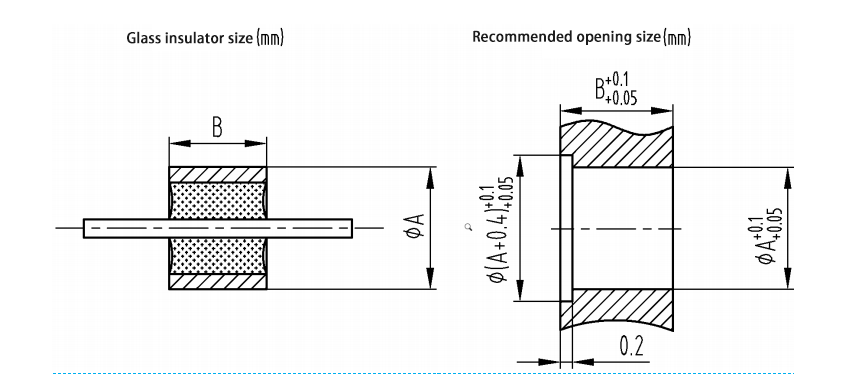 أبعاد فتح التثبيت الموصى بها للعوازل الزجاجية أحادية النواة مبينة أدناه: