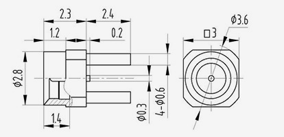يتكون الموصل المحوري RF من النوع SMPM-J من ثلاثة أجزاء: الموصل الخارجي والوسط الزجاجي والموصل الداخلي، ويظهر الهيكل الأساسي في الشكل أدناه: