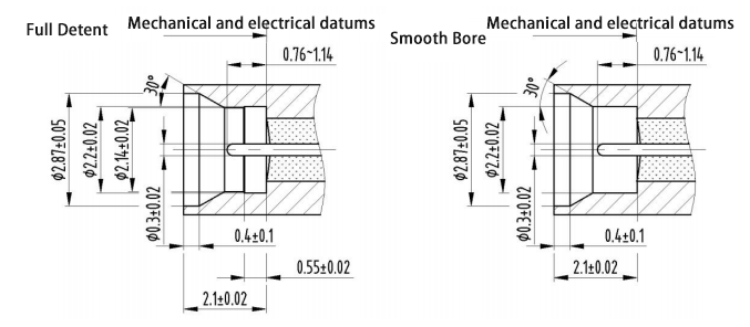 تحتوي الموصلات المحورية RF المختومة بالهواء من النوع SMPM-J على شكلين من الواجهة: ميزان كامل وثقب مكشوف. عند تسمية النموذج، يشير F إلى الهروب الكامل و