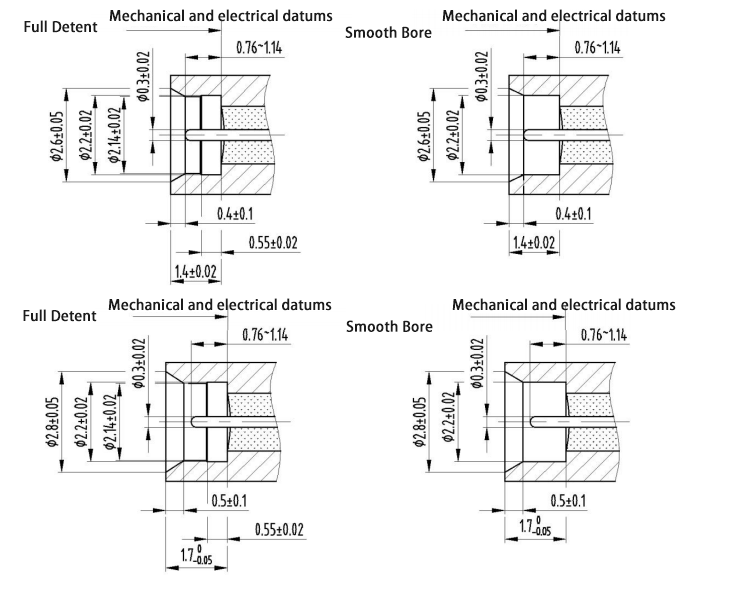 S يعني ثقب الضوء. تنقسم أبعاد الواجهة إلى أبعاد واجهة قياسية وأبعاد واجهة قصيرة، وكلاهما قابل للتداخل مع المقابس من النوع SMPM-K.